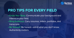 - Work on body language: calm tone, natural eye contact, avoid nervous fidgeting.