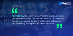 One of the biggest advantages of AI is its ability to automate repetitive tasks. Traditional QA often involves repetitive manual tasks like running the same test on different browsers or devices. This is where AI helps in QA by automating these repetitive tests.